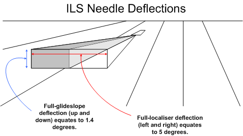 The Localizer of an ILS is normally located within 3° of the runway centreline, and provides guidance using the Course Deviation Indicator (CDI) similar to a VOR radial, but with far greater accuracy or sensitivity. While the full deflection on a VOR CDI equates to 10° (from the central or “on course” marker), full deflection of a CDI on a Localizer (also from the “on course” marker) is normally only 2.5°.6