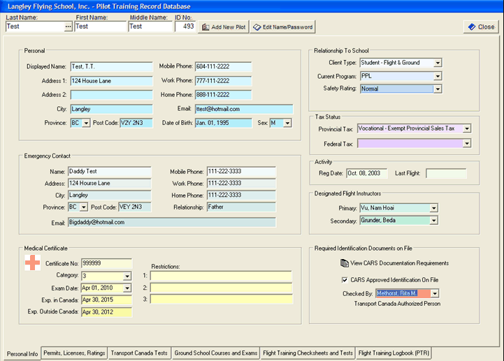 Pilotlog is a complete flight training operations management system developed by Langley Flying School in partnership with Mission Software. Pilotlog is used by Langley Flying School as the primary engine for managing the dispatch of training flights, for maintaining student pilot training records, and day-to-day implementation of training standards quality control. Overall, Pilotlog provides for the timely and efficient exchange of operational, training, and performance information between students and Langley Flying School's teaching and administrative staff. The screen images below provide but a small sample of the visual display that connect Pilotlog to its users.